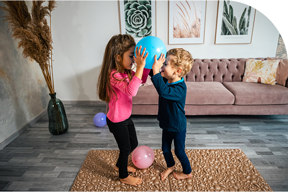 The WellStepp® Kids developmental mat, with its beach-inspired shapes and pleasant surface, turns strengthening the muscles of children’s arches into a fun game.